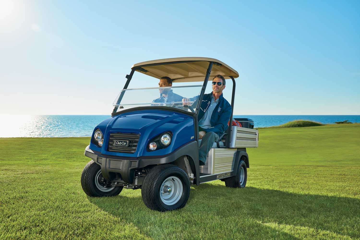 Club Cars eltransportbilar utför sina dagliga gärningar med största möjliga tystnad. Finns även i bensin
